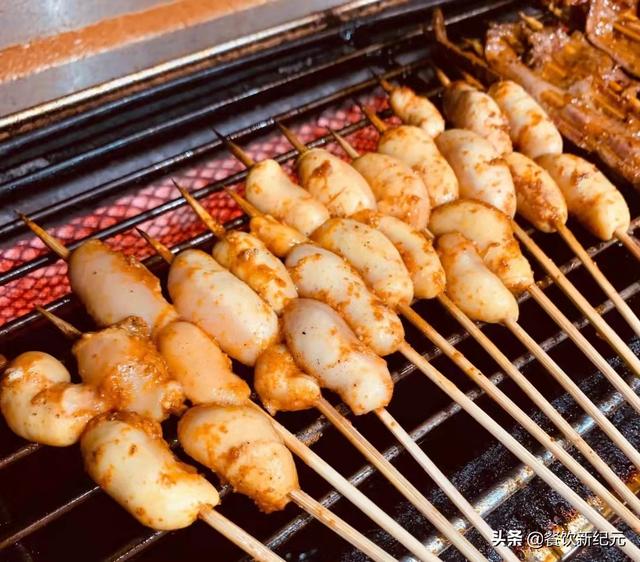 除了生蚝配鸡肾这种另类的吃法之后,还有烧烤鸡肾,一个竹签上面放了两个鸡肾,虽然上面撒了辣椒粉和孜然粉,烧烤香味十足,但是小刘还是没有勇气尝试,最后筷子都没有动一下。