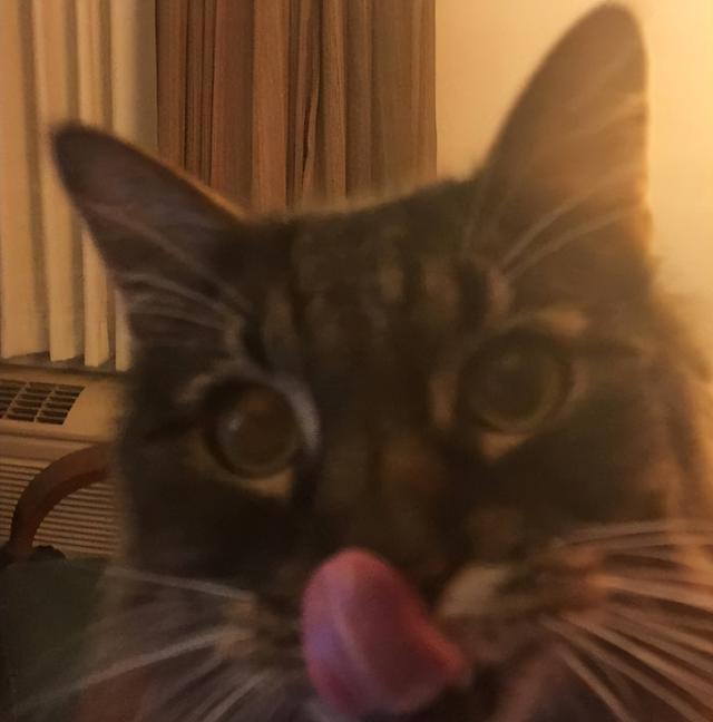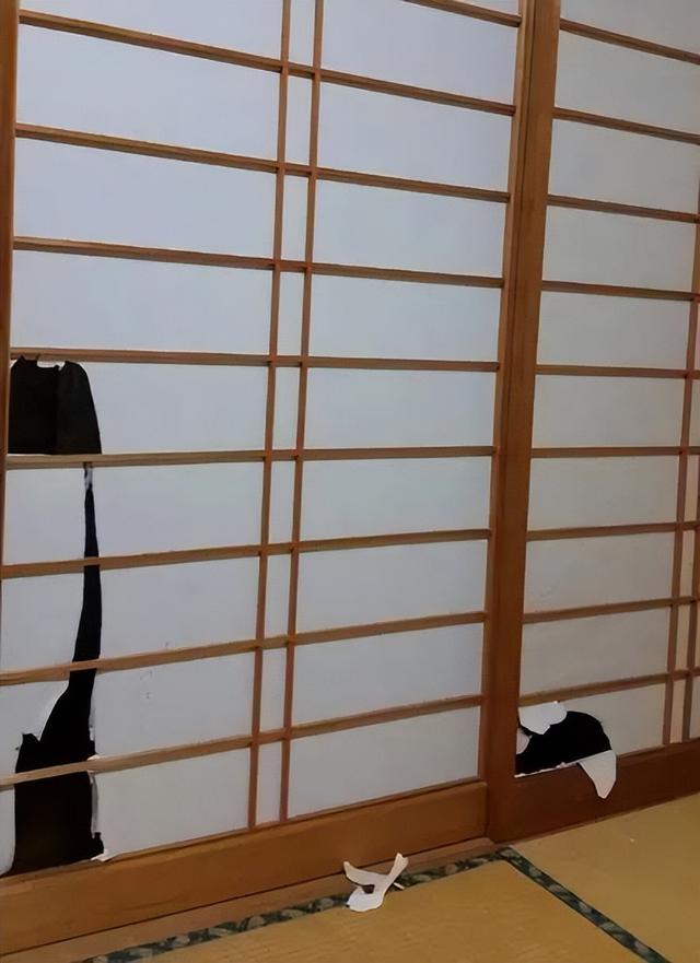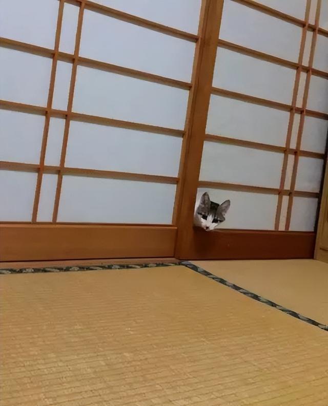 吃着吃着,听到门一声响,门上就出现一颗猫猫头。