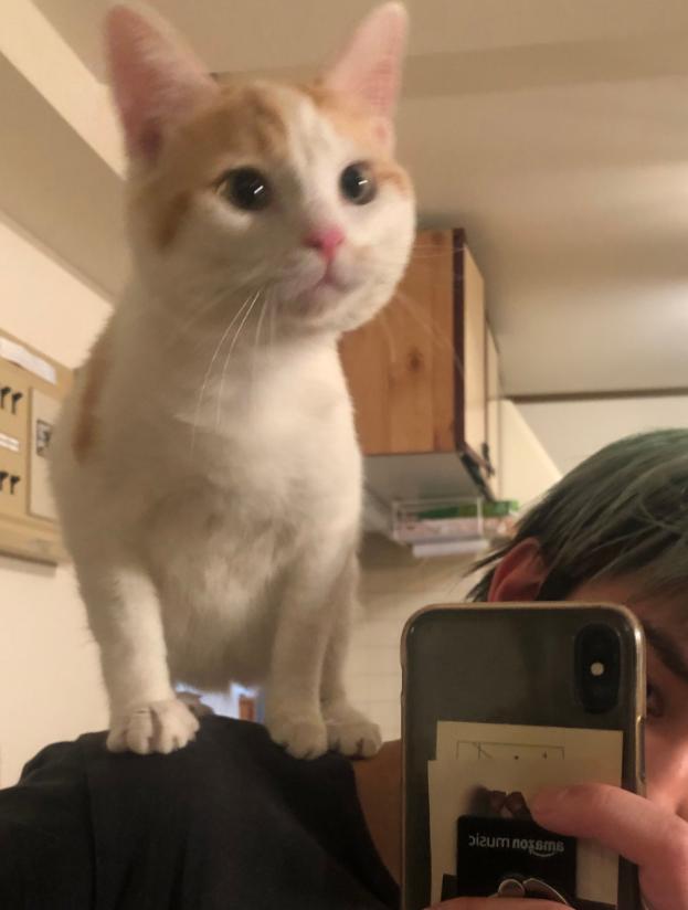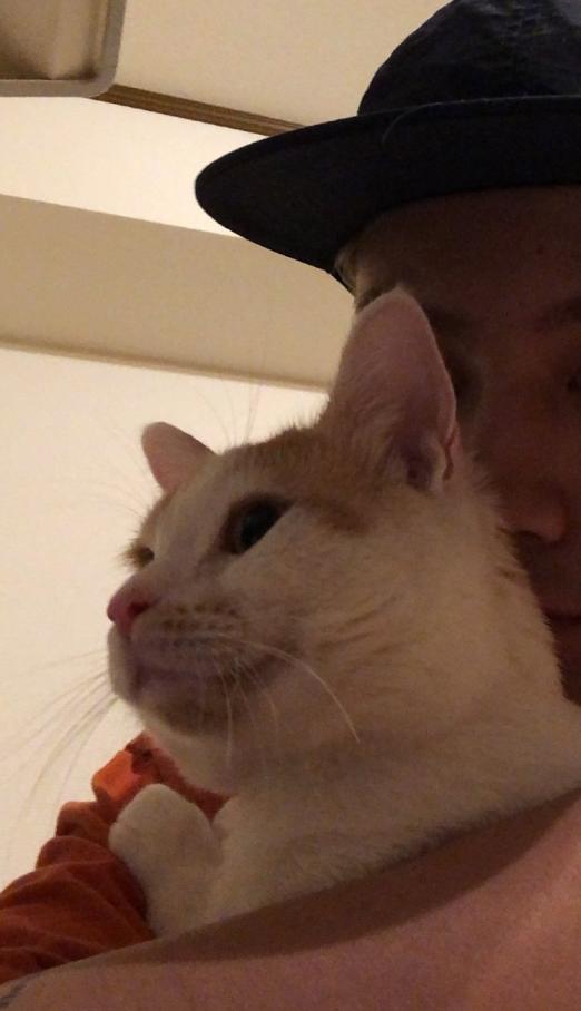 这位铲屎官还和猫咪拍了很多合照,抓住一切可能的机会跟猫合影。