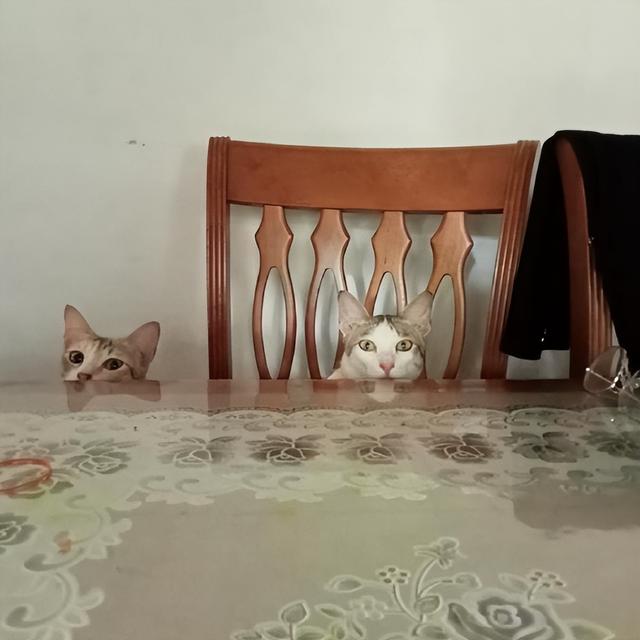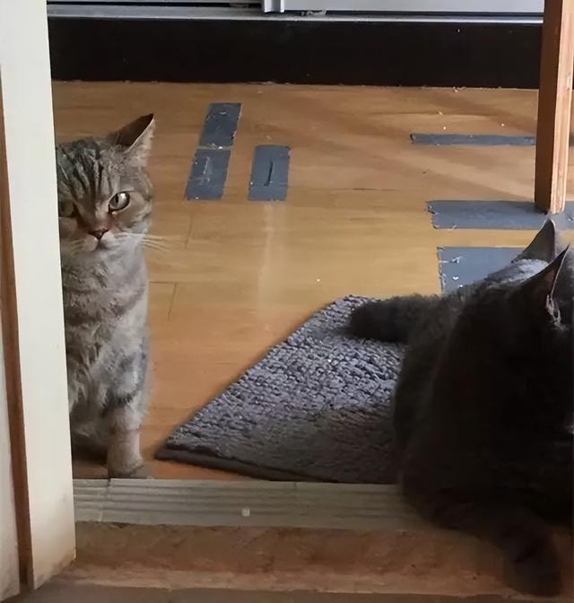 家中另一只猫发现有情况,也加入了观察的队伍。