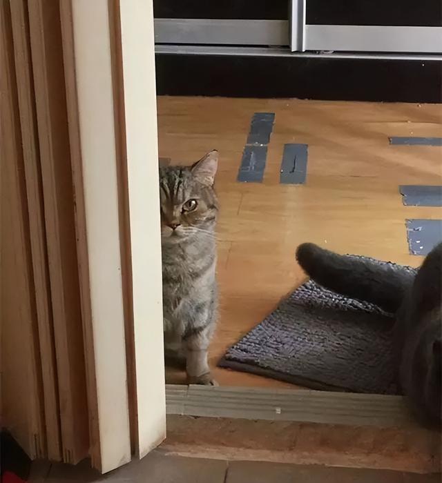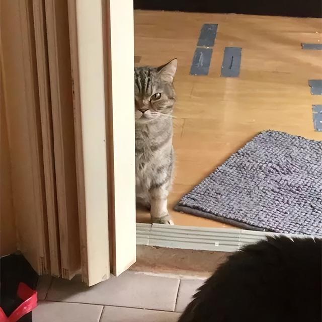 另一位铲屎官也是自顾自地在房间吃零食,结果吃了几口,发现猫咪就在门口。