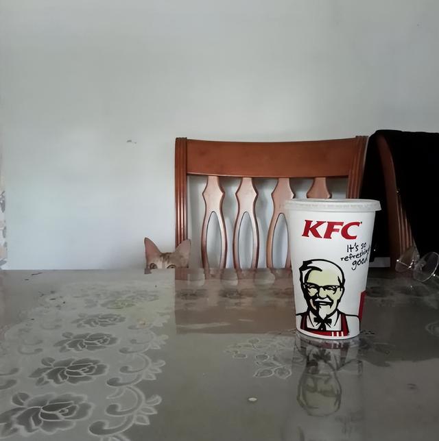 猫咪一步步靠近,根本不信铲屎官说“没开罐罐”这种骗猫的说辞。