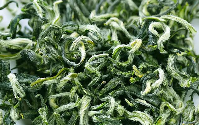 外形纤细卷曲显毫的绿茶,鲜叶经杀青后注重揉捻,使茶条细紧,并在烘炒中抓、搓而成。
