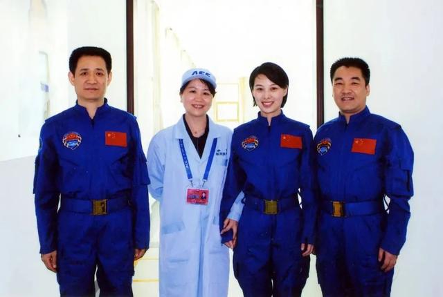 航天员“女教头”黄伟芬与“神十”乘组合影