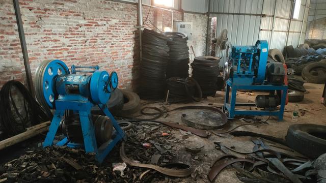 就拿在大部分地区最常见的货车轮胎来讲,里面钢丝材质的轮胎,最初步的加工方式就是用来破碎,打成轮胎胶块,从回收到加工成胶块,虽然利润不高,但是每天的产量比较大,即便是规模小的加工厂,夫妻2人干,1天也能赚个千八百。