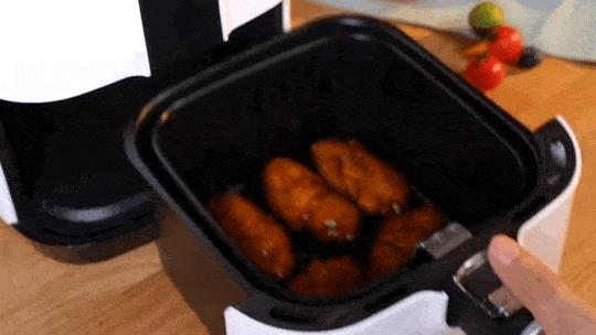 这时候空气炸锅就是一个很好的加热工具,不管是炸鸡、烧肉还是其它什么的,放进空气炸锅里,温度调节到180℃,只要6~8分钟,就能恢复酥脆的口感。