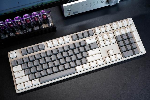 IKBC的W210是把很常见的机械键盘,配色和轴体选择都比较多,这把时光灰的配色就十分不错。白+灰的组合沉稳又耐看,工业复古风很有特点。相较于不少亮骚的配色来说长时间使用不容易审美疲劳,颜值是真的能打。采用了108键设计,在传统104键的基础上增加了音量快捷切换和计算机键,更加方便办公用户的使用。2.4G模块与电脑连接即可使用,操作方便连接稳定。同时减少了线材的束缚,桌面上也更加整洁清爽。