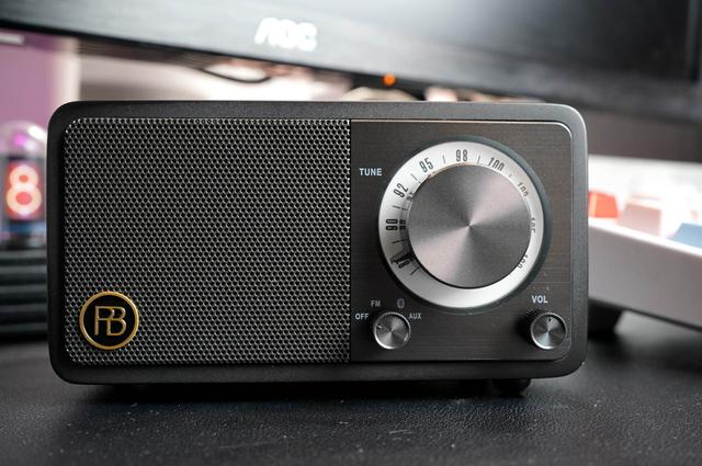 二狗选的是偏向沉稳内敛的黑色外壳,搭配精致复古的旋钮设计,刻度表盘满满的年代感,放置在桌面就是一款风格独特辨识度颇强的产品。出色的工业设计和产品质感,颜值党看了就放不下手。形似收音机,但是却不止收音机,除了传统收音机功能外,更是一台蓝牙音箱。