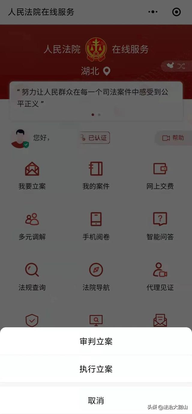 1、微信搜索小程序“人民法院在线服务湖北”,点击小程序,进入网上立案页面。点击“我要立案”。