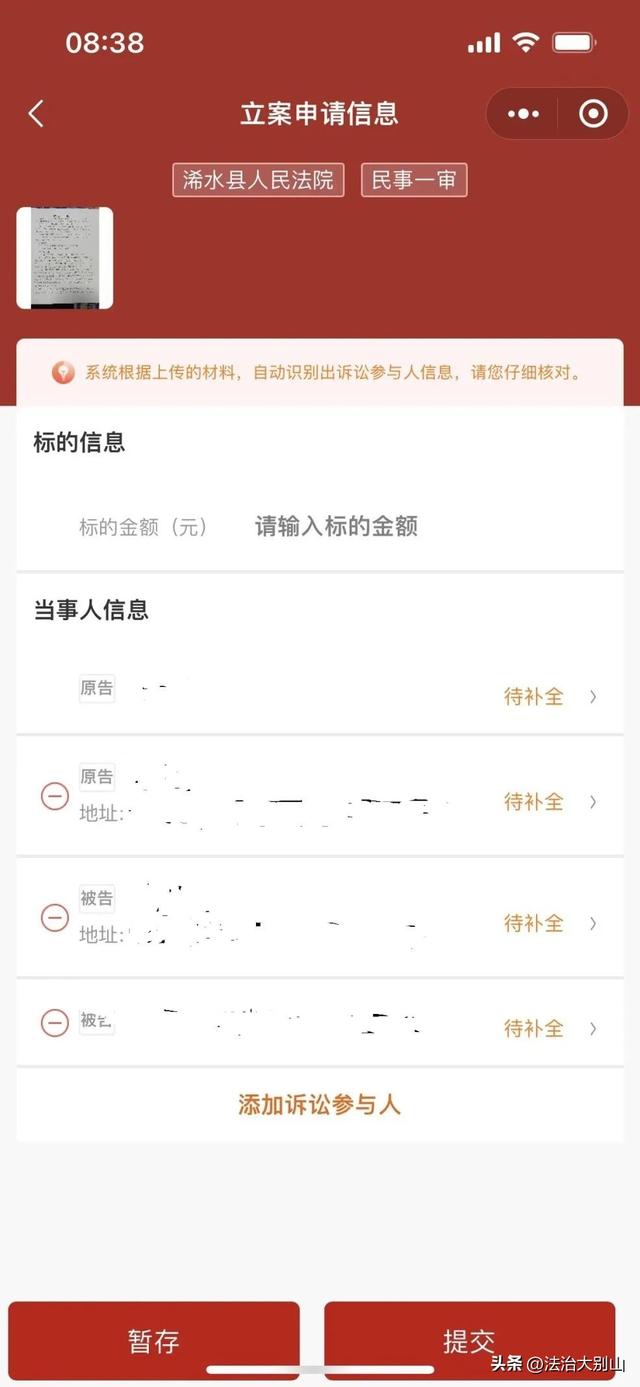 8、点击添加当事人信息,填写带*号的内容(注意:原被告有一方或双方为公司企业等,需要把当事人类型修改为法人)。