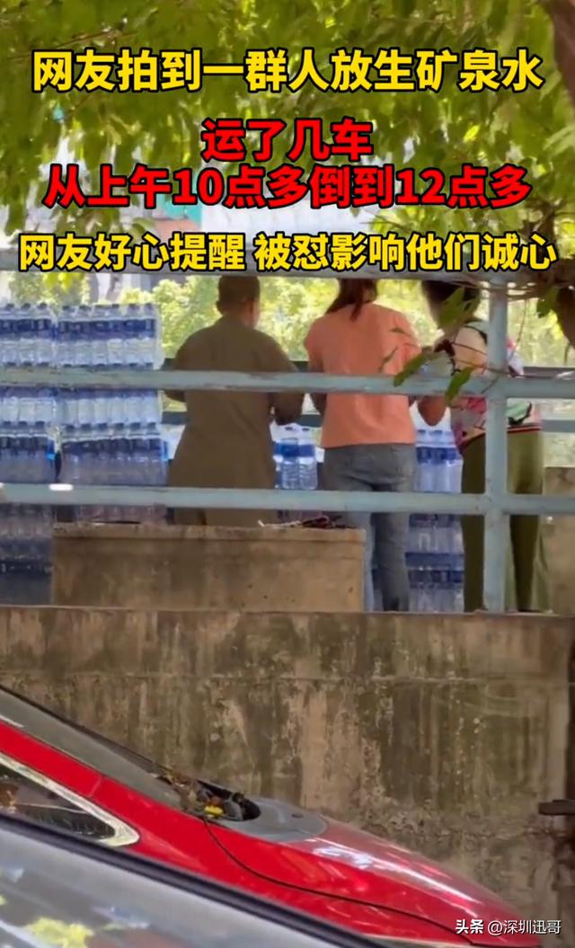 倒矿泉水,而且是这种大量的倾倒已经不能称之为放生了,有网友说和资本家倒牛奶,炸大楼一样,感觉是这么回事,又觉得不是那么回事。