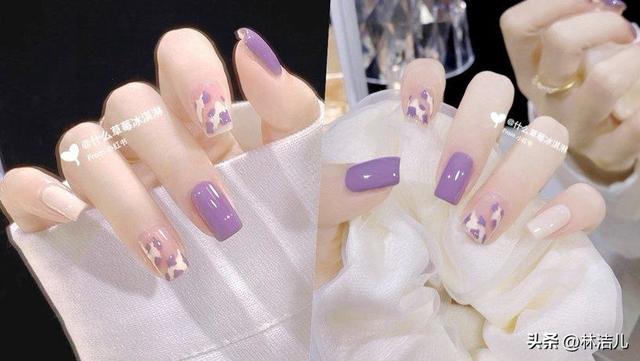 接下来推荐这款超可爱的芋泥紫配上牛奶白的撞色,夏天就是要选择糖果色系的美甲,显白又亮眼,这款美甲还修成方形的法式款,复古感夜会更强一点,是不是看起来就散发满满的气质呢?
