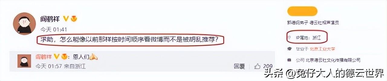 9月13日,德云社阎鹤祥发文,在线询问大家如何按照时间顺序看某社交平台的内容。看到阎鹤祥IP归属在浙江,凌晨时分还在与粉丝互动,大家也是热议纷纷。有的表示,演员录制节目属实辛苦,早起、熬夜都是常态,虽然他们可以拿到不菲的通告费,也算是一份付出,一分收获。当然,也有朋友表示,跨界之后一切都是新的,谁不努力都不行,郭麒麟在中秋节不也是在剧组过的,晒了两个烤包子,当作自己的晚餐。
