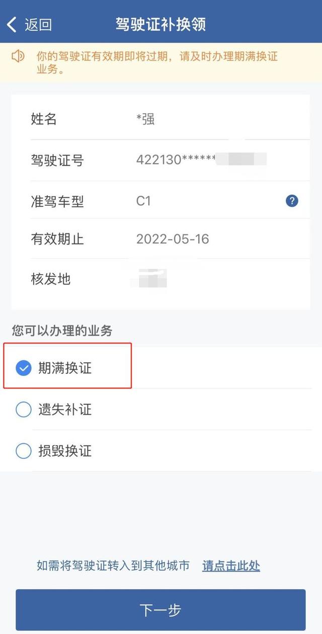 “交管12123”办理驾驶证期满换证只需三步:
