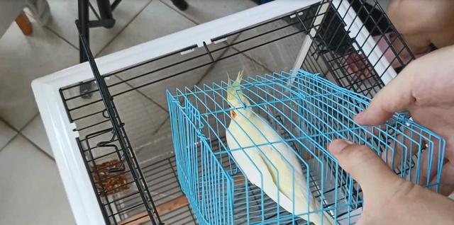 不过接下来要把鹦鹉从小笼子换到大笼子里去。就搞得我们手忙脚乱啦。家里三个人都不敢用手抓,在大笼子和小笼子边忙活了半天。这一段操作下来,真是狼狈不堪。