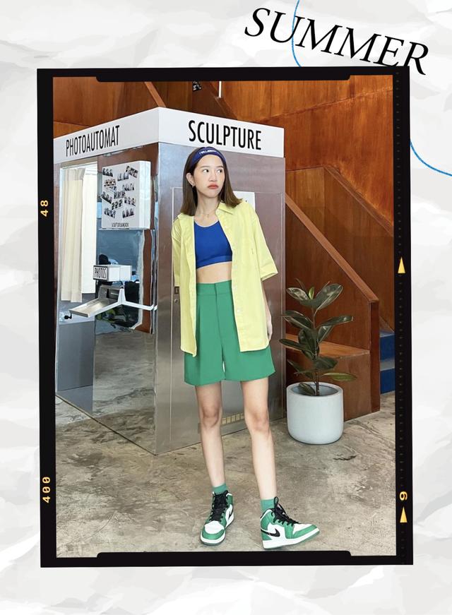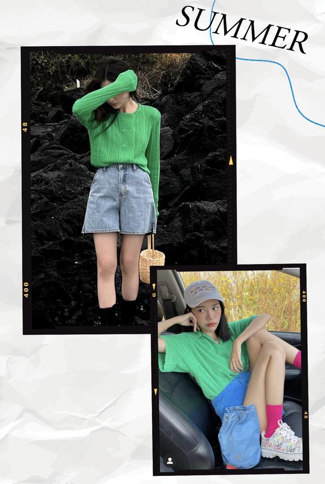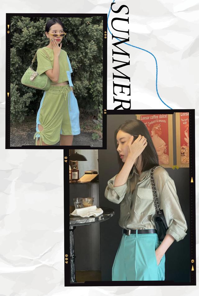 肤色白皙的姐妹可以试试高饱和的绿色+蓝色,大面积亮色炒鸡吸睛!