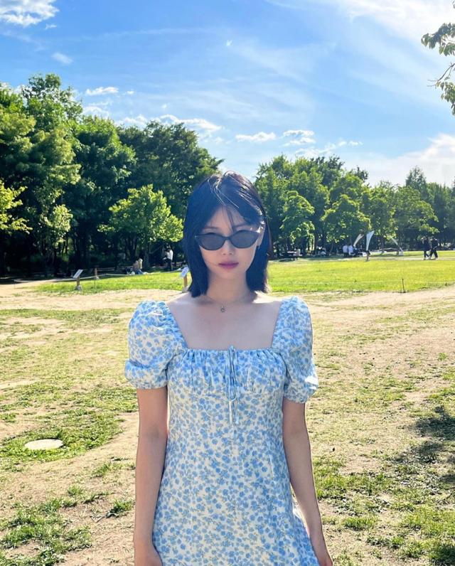 蓝白碎花的小裙纸就更适合温柔可爱的邻家女孩儿啦;