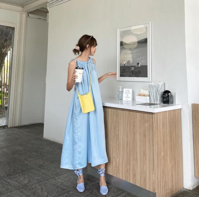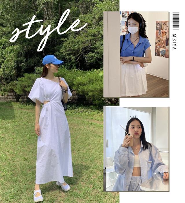 在穿搭上,蓝色也可以说是自带降温buff了,冷冷的色调还很显气质,单穿就满满的高级质感。
