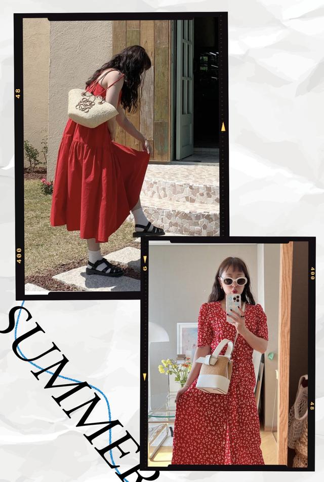 或者来一件红色连衣裙也是不会出错滴,夏日出游绝对出片,还会显得人气色超好哎~