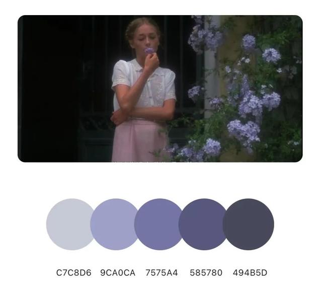 紫色也经常出现在电影中人物的穿搭上,一整个柔美温柔又浪漫至极~