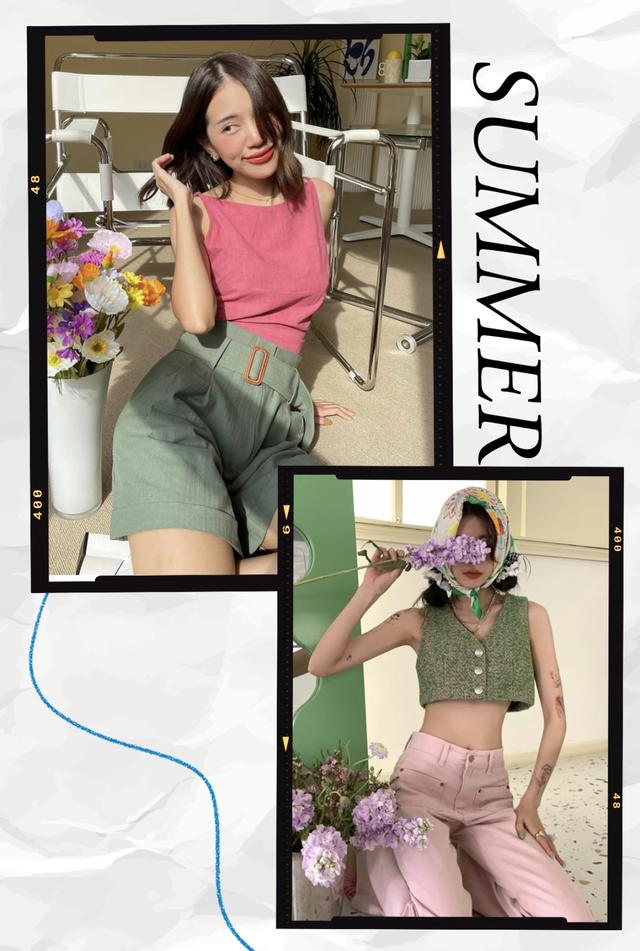 想要再特别一点可以用绿色搭配粉色,这样搭配小女生的娇俏感一整个展露无疑了。