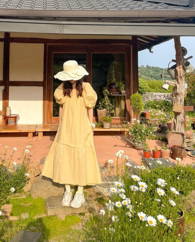 穿上这样一条黄色连衣裙感觉就会像女主角一样优雅自信;