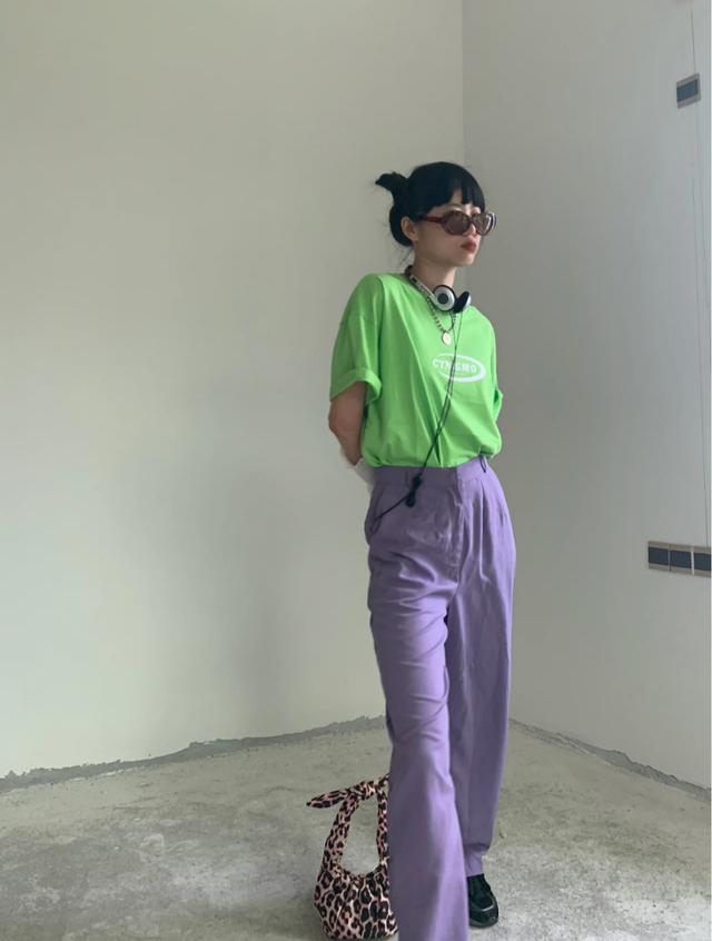 对于喜欢玩色彩搭配的姐妹来说呢,我强烈提议大家try一下绿色+紫色的cp;