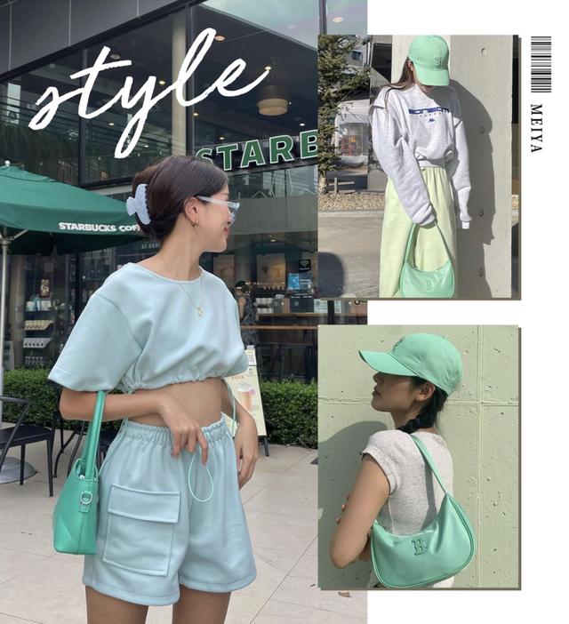 如果对大面积的蓝绿色没有太大把握,也可以先从配饰开始,一样能让整身穿搭灵动起来~