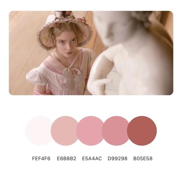 除了同色系,大家可以像电影中的爱玛这样用白色搭配粉色;