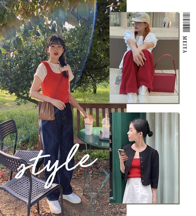 不过也要提醒一下,要是肤色偏深的姐妹就尽量注意把红色放在远离脸的下半身哦。