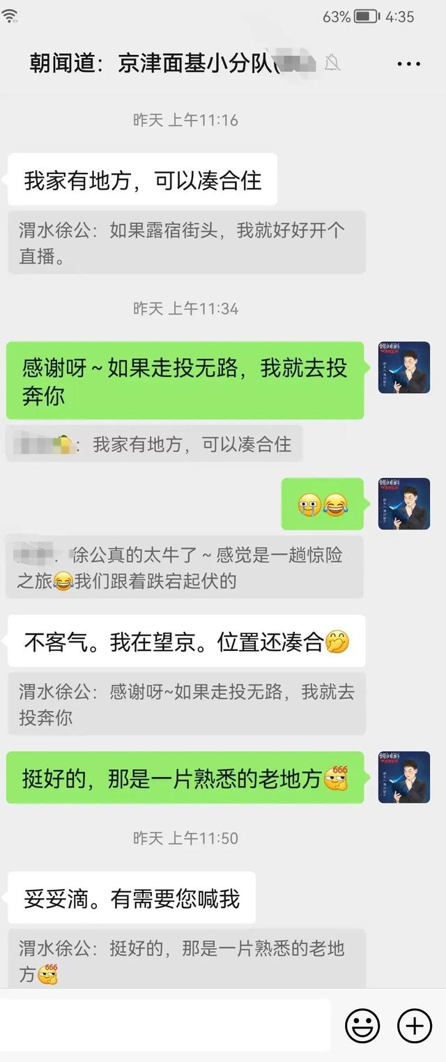 当然了,也有群友愿意慷慨相助。我们的群友小柠檬告诉我,如果实在回不去了,就暂住在她家也可以。