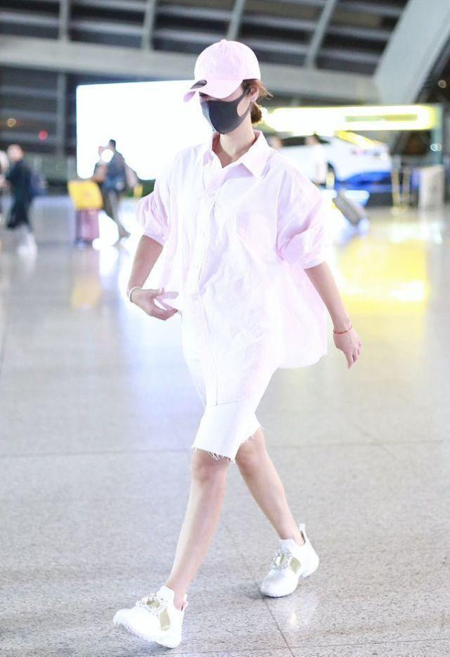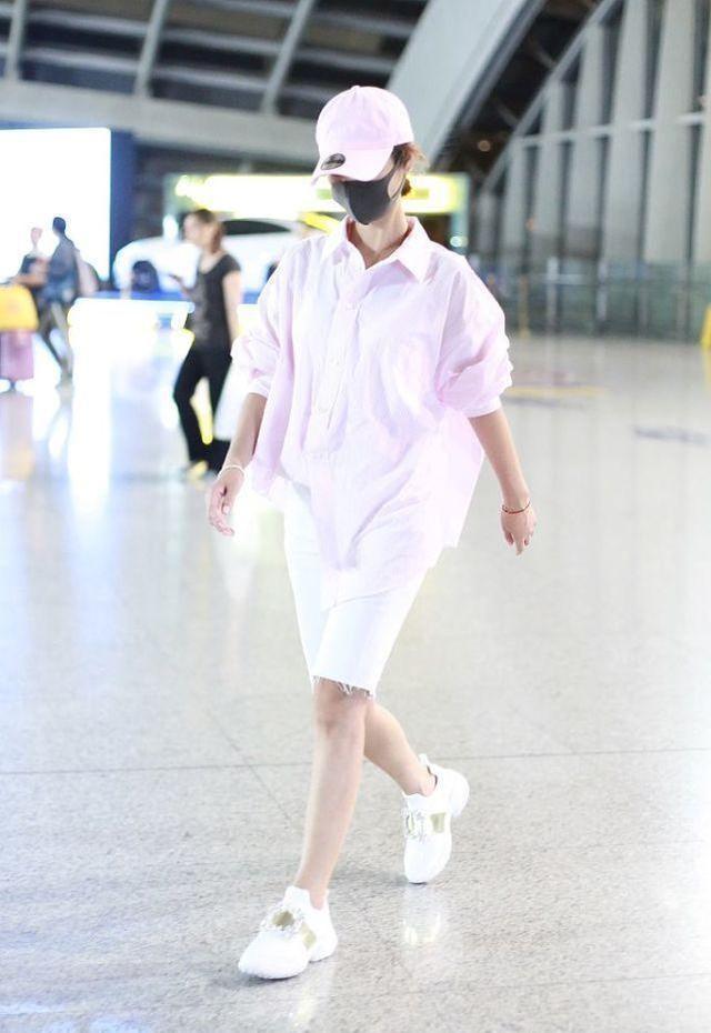 林心如的整体穿搭只选择了粉白两种色彩来修饰气质,同时这种浅色系凸显了少女感,粉色也是淡淡的色彩不会显得夸张,同时粉色帽子与衬衫相呼应,白色骑行裤与运动鞋相呼应不会影响视觉协调性,同时也不会觉得视觉配色很混乱,色彩搭配也决定了穿搭造型的魅力与时尚感。