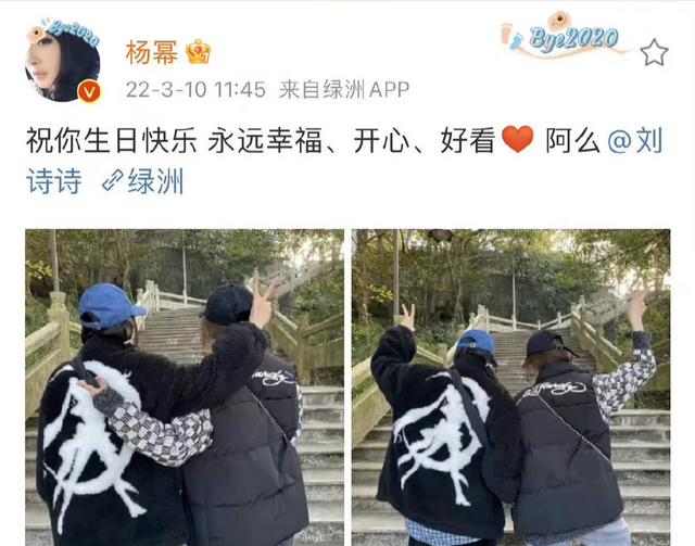 三月初,杨幂还在公共平台发了对刘诗诗的生日祝福,并且配了两个人的合照。