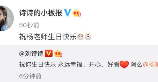 刘诗诗打破不和流言,隔空祝福杨幂生日快乐。