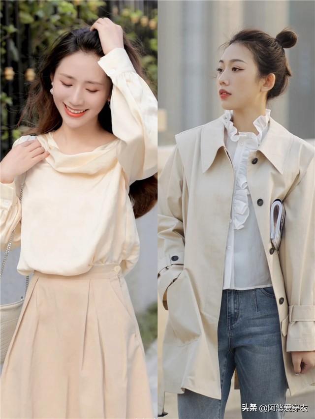 初秋季节,相信女孩们也都会给自己选择各种时髦的风衣吧,风衣在当下真的很受欢迎,但在挑选风衣的时候,你还得考虑颜色,常规的就是卡其色风衣,大家都很喜欢,但除了这种卡其色风衣,之后大家还可以尝试其他的时髦色彩,比如这种杏色风衣,穿在身上清新又简约。
