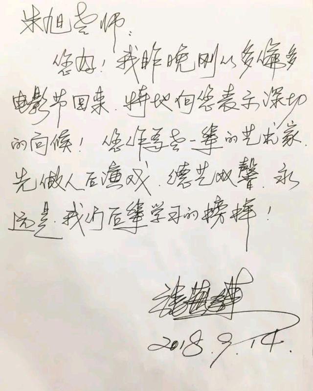 关于张艺谋的毛笔字迹我们实在是不多见,即使其硬笔字迹,在网上也是不多。我们在上边所看到写给朱旭的这封信,是为张艺谋的硬笔字迹。从此信来看,张艺谋的字迹豪放粗犷,自由奔放,不拘一格,行书为主。