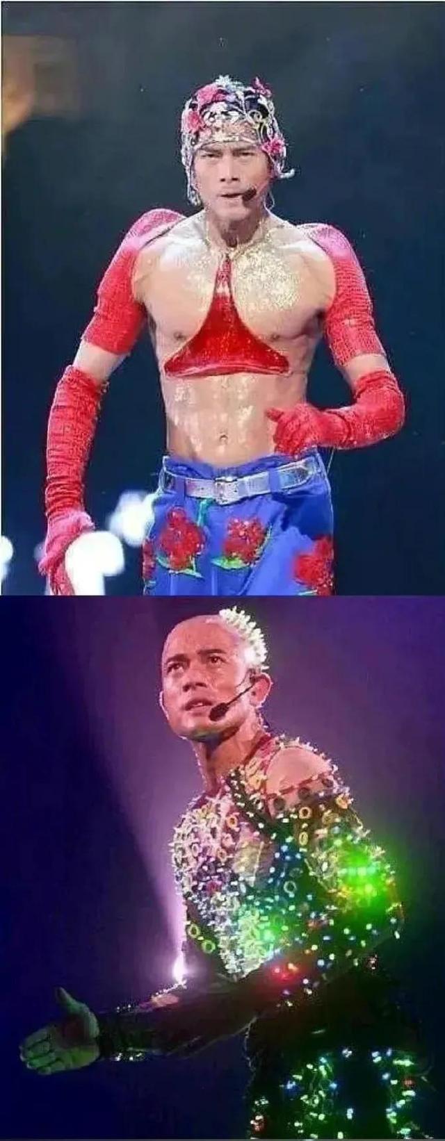 更别提男艺人了,稍微穿着暴露就会被扣上油腻媚粉的帽子。殊不知老牌男艺人的舞台造型有多前卫和大胆,不得不说他们真的太了解粉丝想要什么了。