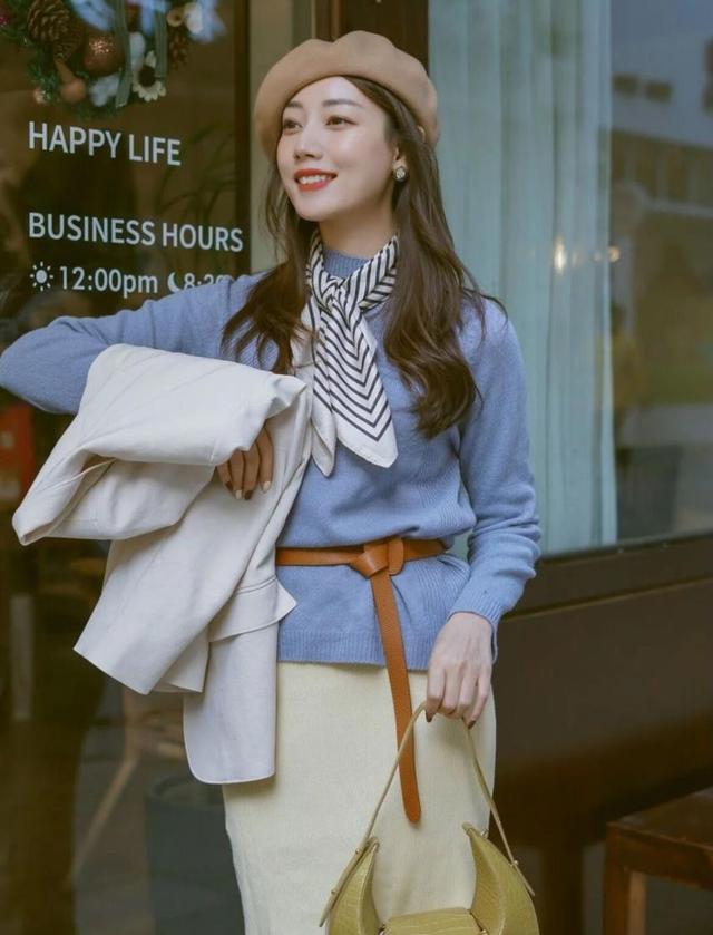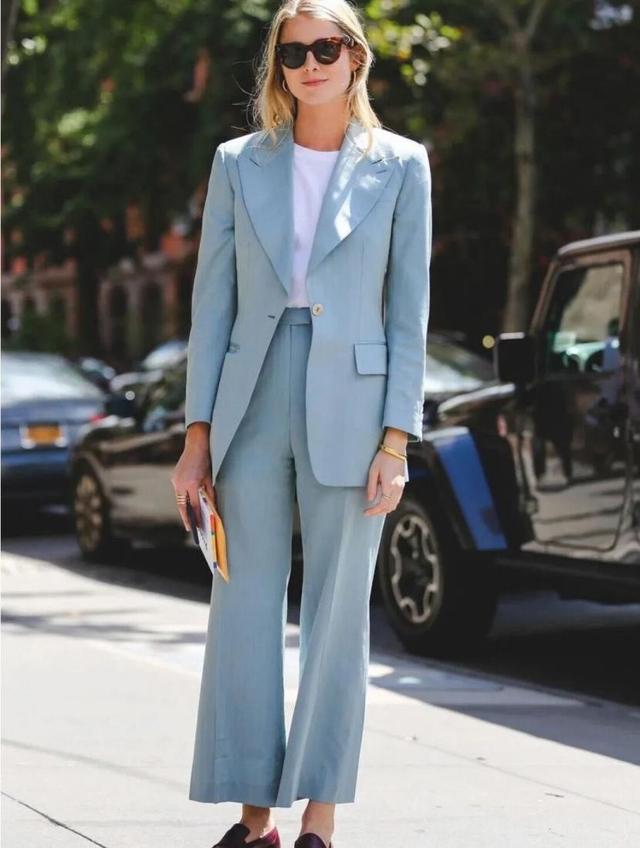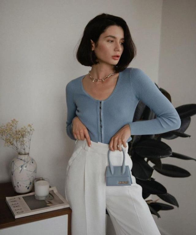 蓝色和黄色一直都被认为是时尚圈视觉感受最稳定的两种颜色,这样说是非常有道理的,因为蓝色穿在身上可以很好地中和掉黑黄皮脸上的黄气,让整个人的肤色变得更加通透和自然,所以肤色偏黑黄的女生,一定不能错过这个显白色。然而蓝色的范围很广泛,饱和度过高的蓝色容易显老气,因此低调耐看的雾霾蓝色就是首选。