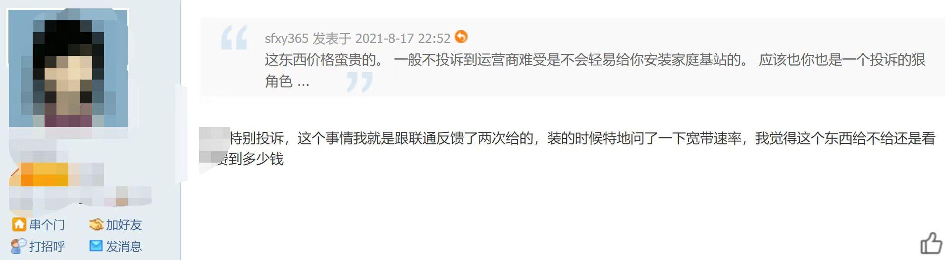 需要注意的是,家庭基站不是买了就能用,还要向运营商申请权限。通信人家园网站从事运营商工作做的人较多,他们表示一般只有信号特别差的地方,才能申请家庭基站,而且可能还会需要给运营商多打几次电话申请,或者去工信部投诉运营商。