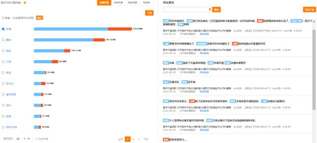 自上线以来天猫平台此款产品相关评论味道、口感维度分析