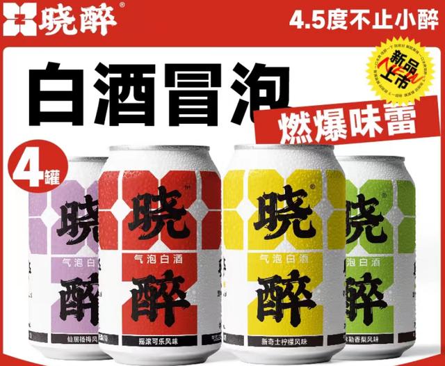 晓醉上新低度气泡白酒,坚持气泡口感、放弃代糖,“可乐+白酒”新口味挑战混搭,营销上注重白酒文化破圈。