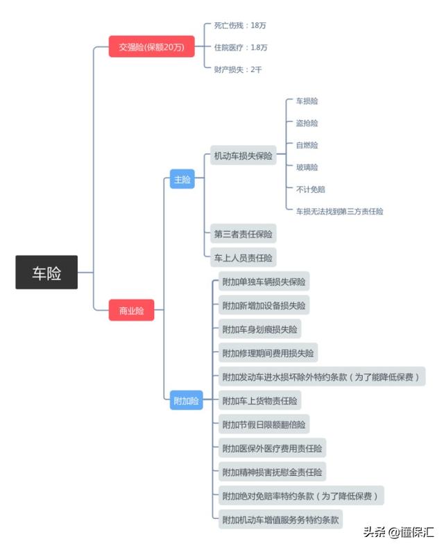 车改之后,车险分为交强险与商业险,商业险分为3大主险与11个附加险。