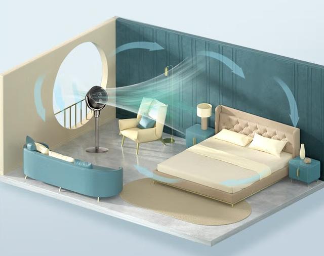 空气循环扇能够加速室内空气的流通,这样不需要直吹也能感受到舒适的风吹在身上,送风的角度更多,距离也更远,比普通风扇要强很多。