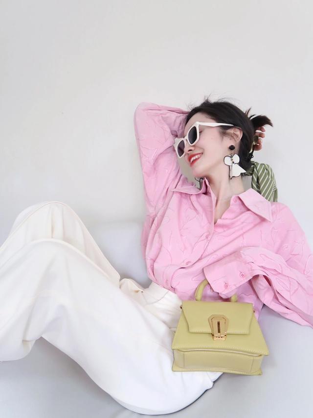 如果说还是很担心驾驭不了粉色,但又想要尝试一下,就可以试试将粉色的元素小面积的点缀,或者是将粉色放在我们下半身进行穿搭,上半身用一些中性色来进行搭配,这样可以减少踩雷的概率。