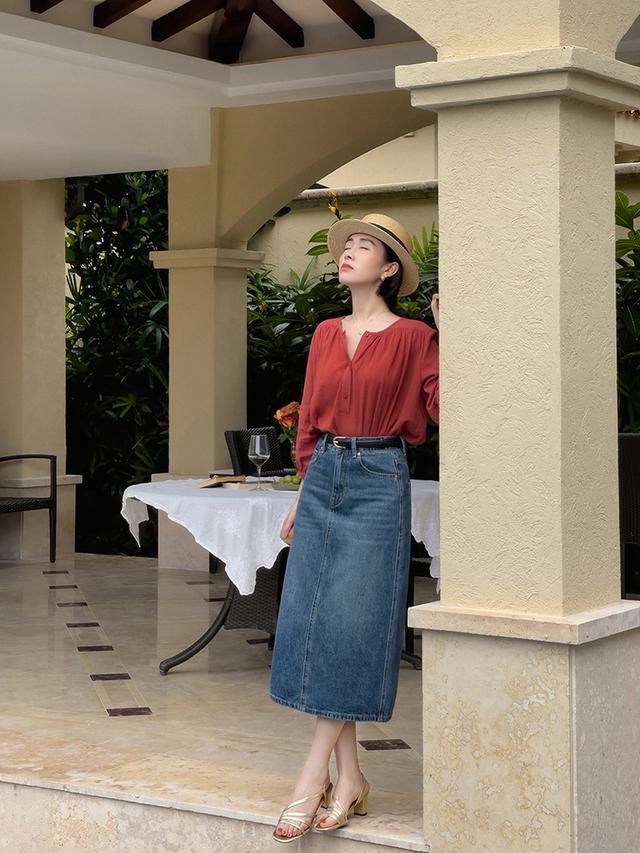 我个人是比较喜欢这种牛仔半身裙的,尤其是今年夏天,天气总是忽冷忽热的,穿搭太过单薄的单品在早晚出门的时候就感觉很冷,尤其下雨的话,在一雨成冬的昆明,还是这种厚实一点的长款牛仔半裙更保暖实用。