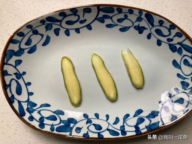 6.将蒸鱼的汤汁倒掉并取出铺在下面的姜片。