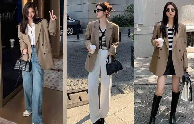 而在搭配方面,西服外套也没什么难度,不管是搭配西装裤,还是搭配牛仔裤、阔腿裤,都不失职场范。