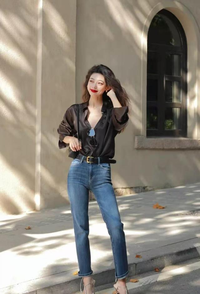 同时,在紧身牛仔裤的包裹下,腿部线条也能得到优化,显得双腿又细又长又直。