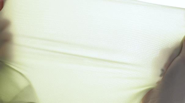 经无数次尝试,定下 83.3% 锦纶+ 16.7 % 氨纶的制作而成,才能纺织出薄如蝉翼,摸起来一丝凉意的冰丝安全裤。