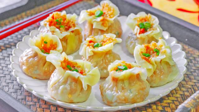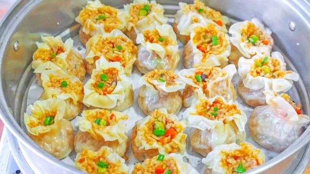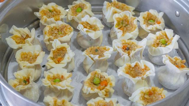 19、全部做好后放入蒸锅,大火蒸15分钟就熟透了,关火直接取出来就可以开吃了,烧麦就做好了。